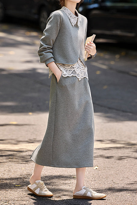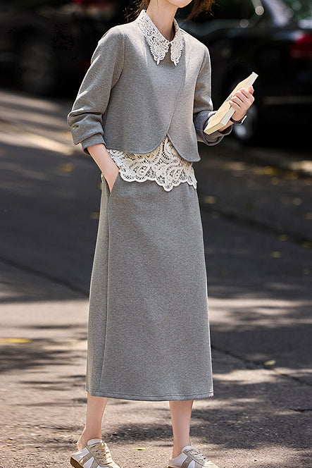 Conjunto de dos piezas de encaje y punto – Elegancia contemporánea y comodidad refinada