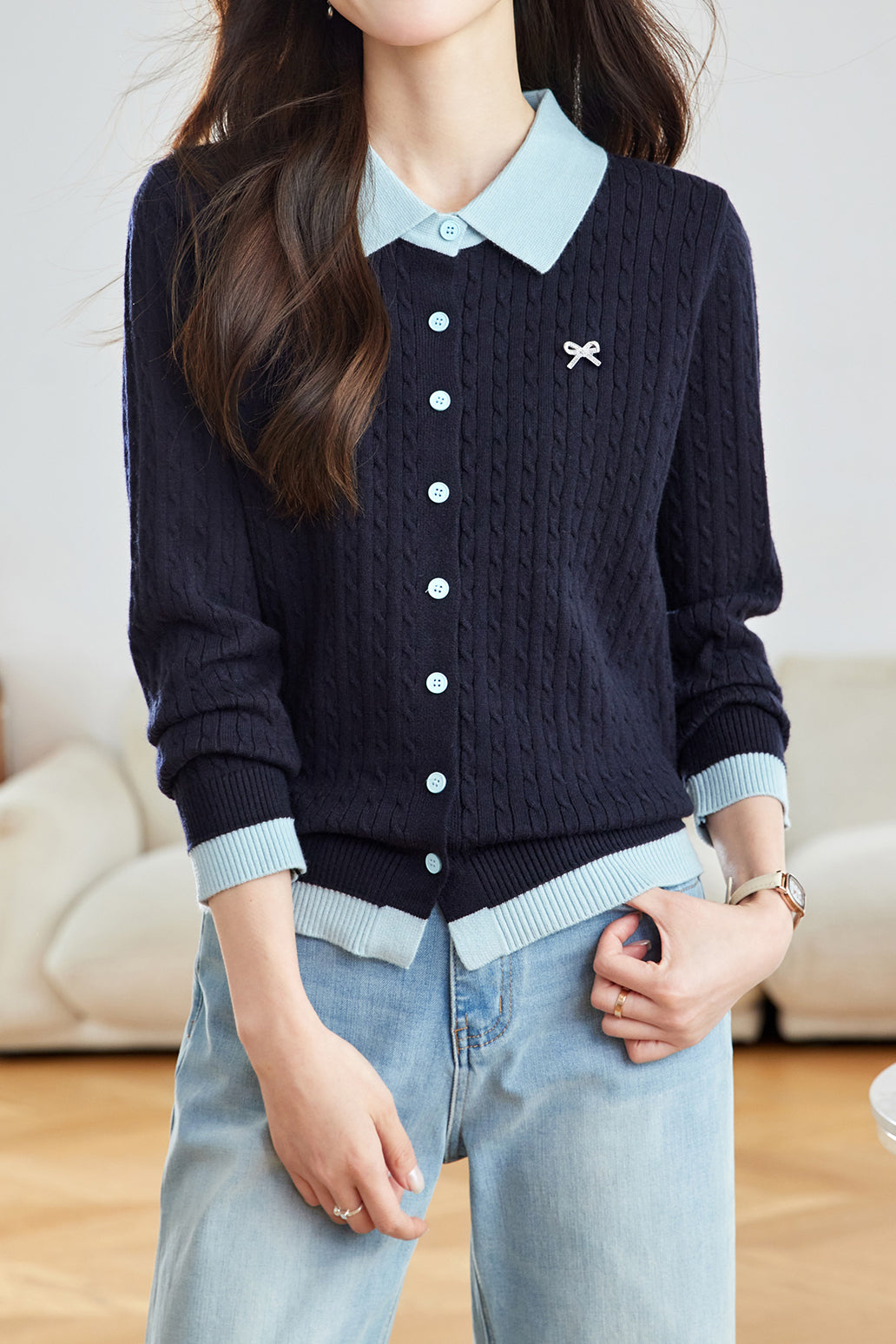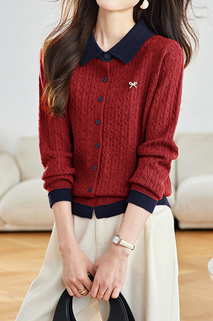 Este cárdigan combina elegancia y comodidad con su diseño de bloques de color. El detalle del broche de mariposa desmontable añade un toque distintivo y femenino que resalta cualquier look. Ideal para quienes aman destacar con estilo sin perder naturalidad.