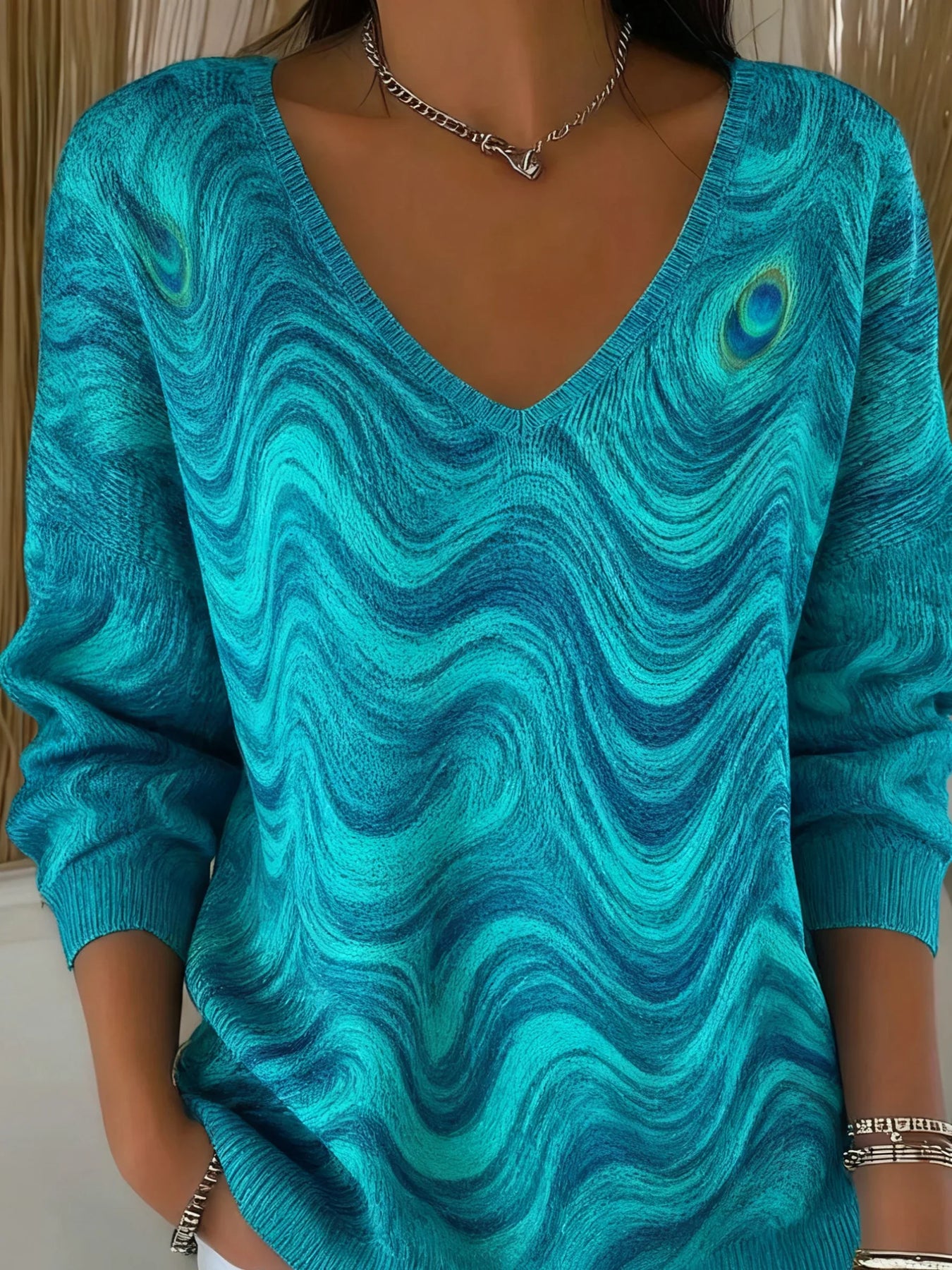 Este suéter de algodón degradado ofrece una apariencia moderna y femenina. Sus delicados matices atraen la mirada y añaden un toque único a cada conjunto.